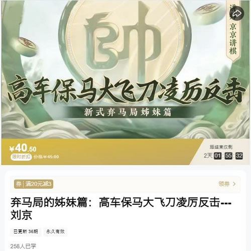 弃马局的姊妹篇:高车保马大飞刀凌厉反击—刘京 原价:40.5元 声明:本站所有文章,如无特殊说明或标注,均为本站原创发布。任何个人或组织,在未征得本站同意时,禁止复制、盗用、采集、发布本站内容到任何网站、书籍等各类媒体平台。如若本站内容侵犯了原著者的合法权益,可联系我们进行处理。