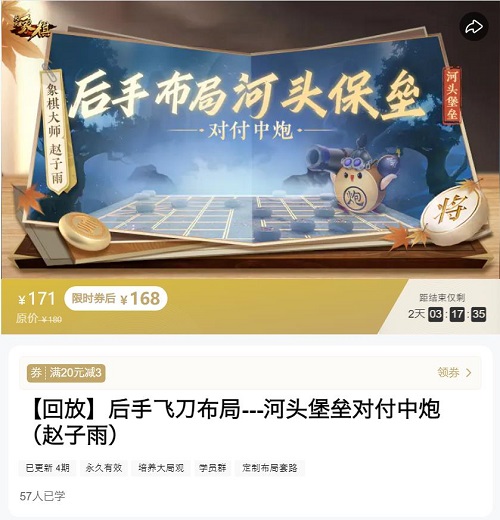 【回放】后手飞刀布局—河头堡垒对付中炮(赵子雨) 原价168元